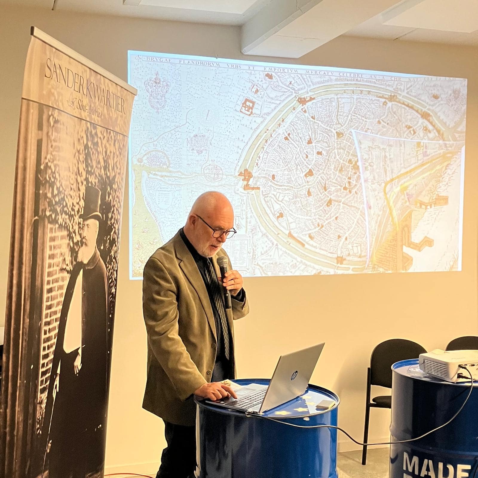 Michel Goeman, voorzitter van de Gidsenkring Brugge, neemt het Sanderkwartier terug mee op een een meeslepende reis door ‘Brugge West – met verborgen verhalen, onbekende feiten en sprekende anekdotes, vastgesteld door de scherpe blik van een oer-Brugse gids.